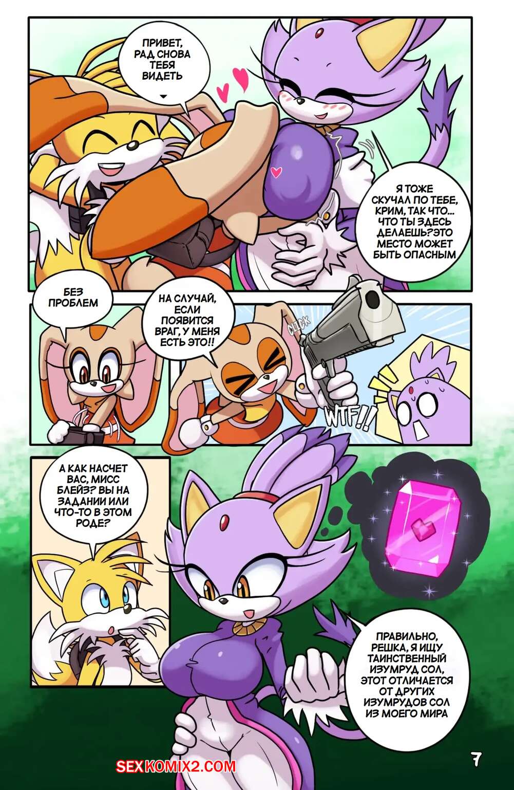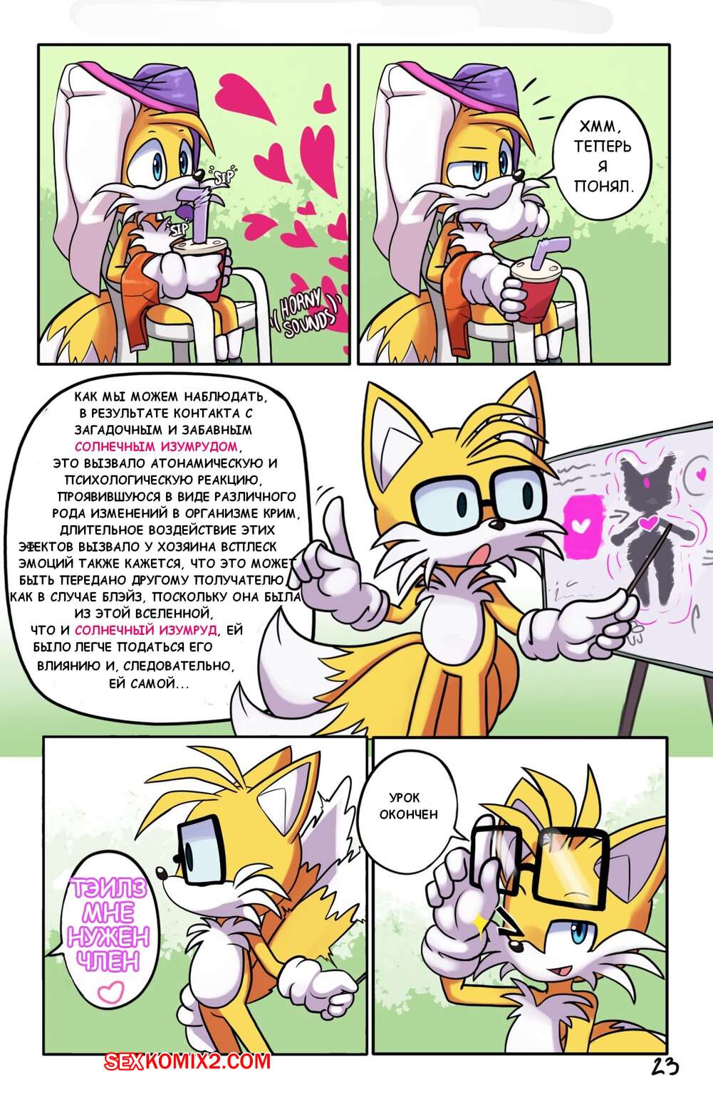Порно комикс Соник. Спешка Тейлза. Tails Rushd. Blazy Mix. Ichduhernz Две горячие сисястые девушки подверглись действию кристала, от чего их тела изменялись, а девушки возбудились. Они разделись и стали ласкать друг дружку, пока Тейлз за ними наблюдал.