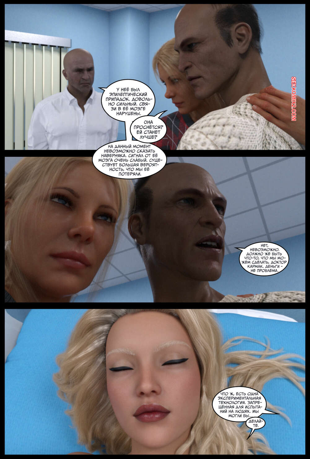 Порно комикс Поглощение. Часть 1. The Takeover. Cantraps Преступника в тюрьме приговорили к смертной казни, но загадочным образом его разум перенесся в тело сексуальной блондинки. Он был шокирован произошедшим, но решил воспользоваться таким шансом по полной.